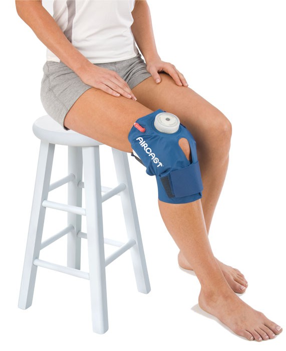 Jednoczesna krioterapia i kompresja stawu kolanowego. Jedyny zestaw do krioterapii kompresyjnej bez potrzeby stosowania termosu. Zestaw zawiera ręczną pompkę do inflacji mankietu. Mankiet utrzymuje temperaturę do ok. godziny zapewniając długotrwałą terapię zimnem